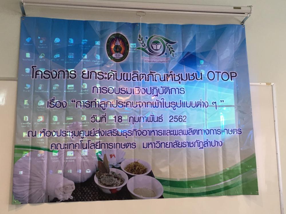 โครงการบูรณาการพันธกิจสัมพันธ์เพื่อแก้ไขปัญหาความยากจนของประชาชนในท้องถิ่น "การส่งเสริมอาชีพเพื่อเพิ่มรายได้การอบรมเชิงปฏิบัติ เรื่อง การทำลูกประคบจากผ้าในรูปแบบต่าง ๆ วันจันทร์ที่ 18 กุมภาพันธ์ 2562 ณ อาคารปฏิบัติการ คณะเทคโนโลยีการเกษตร มหาวิทยาลัยราชภัฏลำปาง